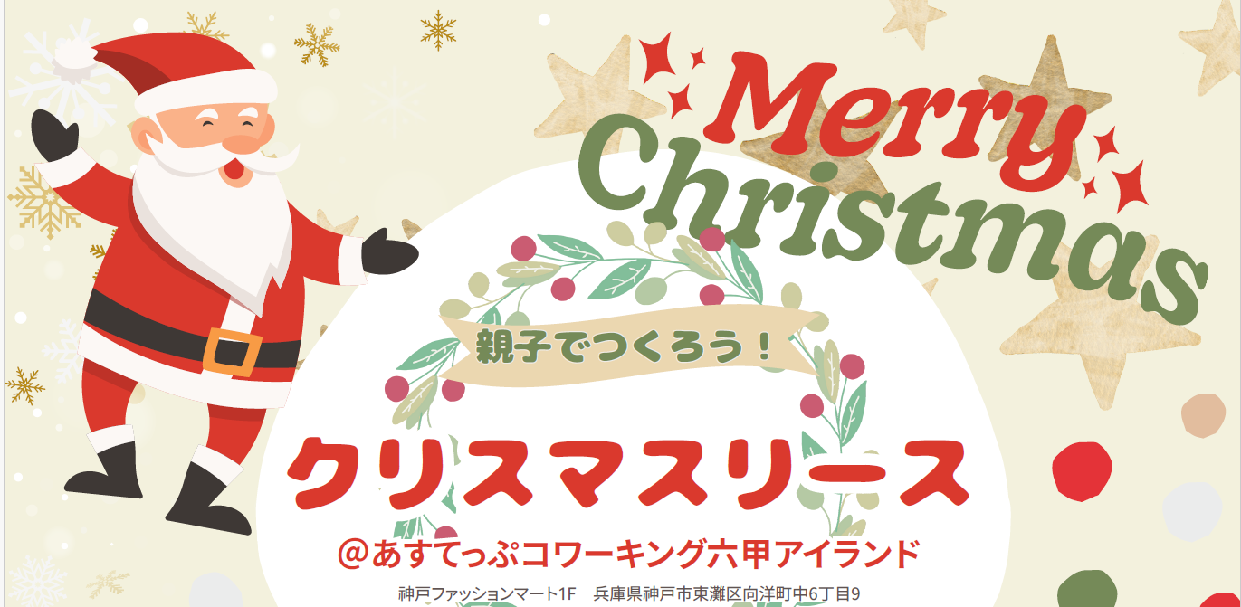 【12月4日】あすてっぷコワーキング六甲アイランド一時保育体験イベント 親子でつくろう!クリスマスリース