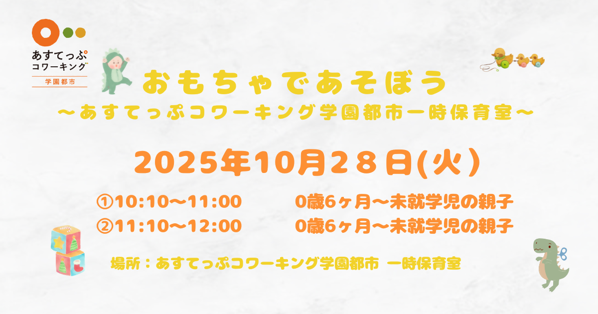 【10月28日】あすてっぷコワーキング学園都市 一時保育室おもちゃであそぼう