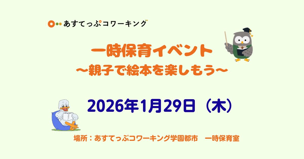 【1月29日】親子で絵本を楽しもう~あすてっぷコワーキング学園都市 一時保育室~